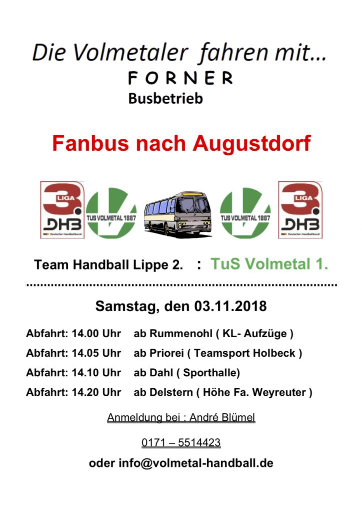 Anmeldungen für den Fanbus nach Augustdorf wie immer unter: