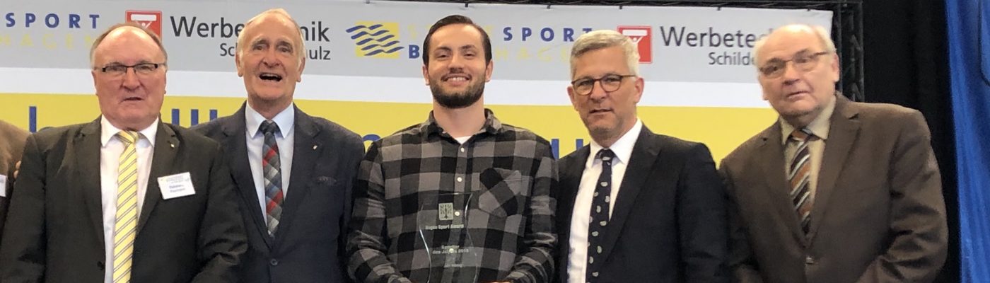 „Ich bin sehr stolz auf diesen Preis und bedanke mich bei allen Teilnehmern, die für mich gestimmt haben, so Jan nach der Ehrung durch den Oberbürgermeister Erik O. Schulz und den Vorsitzenden des Hagener Stadtsportbundes Reinhard Flormann.