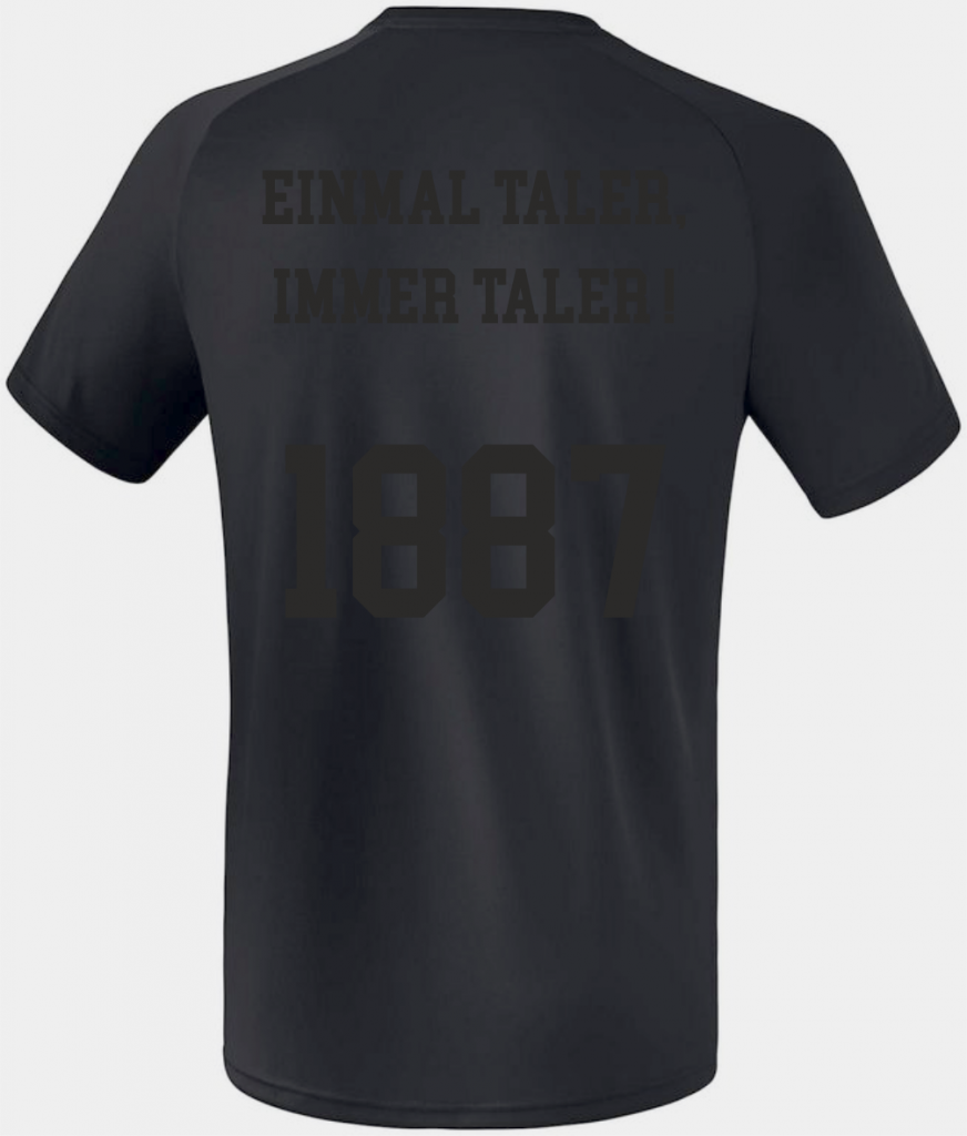 Das aktuelle Sondertrikot des TuS Volmetal in einer außergewöhnlichen „Black in Black Edition“. Gebrandet mit dem Vereinslogo, der „6.“ für das sechste Jahr in der 3. Handball-Liga, dem Green Devils Logo, „Einmal Taler, Immer Taler“ und dem Gründungsjahr des TuS Volmetal „1887“.