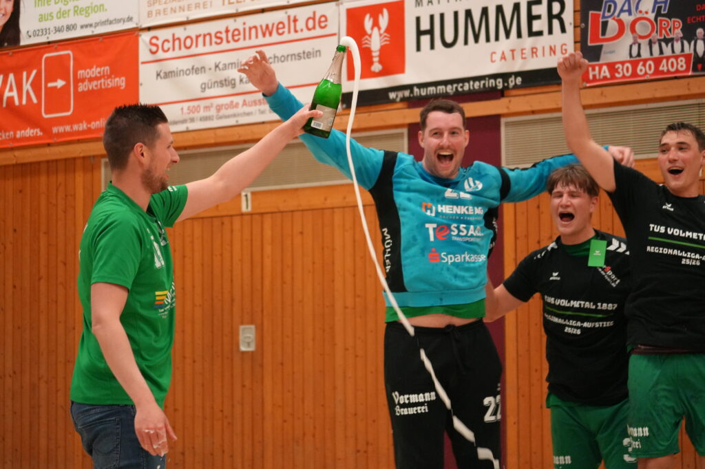Unsere 1. Herren haben es geschafft! Mit einem überzeugenden 37:27-Erfolg gegen den SuS Oberaden machen wir den Aufstieg in die Regionalliga vorzeitig perfekt und sichern uns gleichzeitig die Meisterschaft in der Oberliga Westfalen 2.