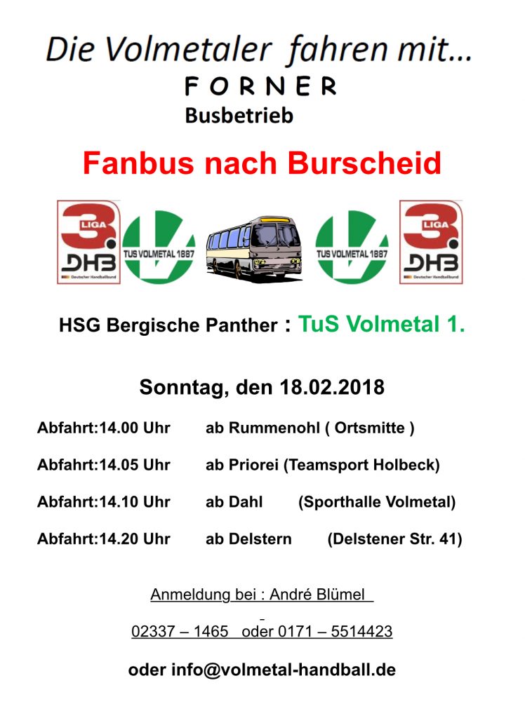 Auswärtsspiel am kommenden Sonntag bei den Bergischen Panthern. Der Fanbus kann ab sofort gebucht werden. Anwurf der Partie in Burscheid ist um 17h. Anmeldungen ab sofort unter info@volmetal-handball.de